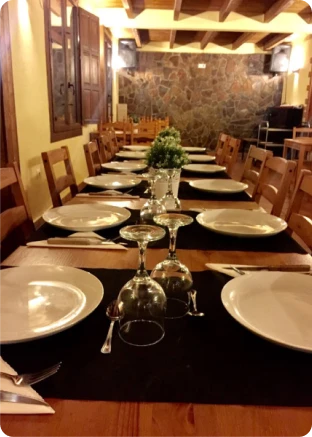 Nuestras infraestructuras turísticas de Fuente del Barrio incluyen un restaurante de uso privado para nuestros huéspedes, ideal para eventos y celebraciones de hasta 60 personas. Con un ambiente rústico y tranquilo, es perfecto para bodas, reuniones familiares, y reuniones de trabajo.